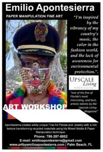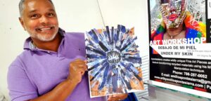 Art workshop to groups (students, social group, organizations educating their target population, members or associates/staff/employee, etc.) to create art pieces, jewelry from discarded objects and to learn how to address difficult topics about social issue-commentary or disease awareness using art.